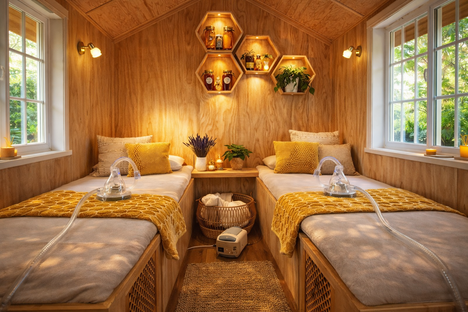 Apitherapy sessions are designed as a wellness experience intended to support relaxation and comfortable breathing.